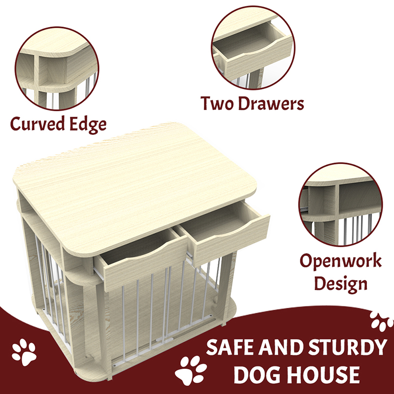 1. Bezpieczny i zdrowy materiał: Klatka dla psów w stylu mebli wybrana rama z litego drewna i kombinację ogrodzenia z drutu stalowego, z powłoką nietoksyczną z klasy spożywczej, nawet jeśli żucie zwierzaka jest bezpieczne i bezproblemowe.